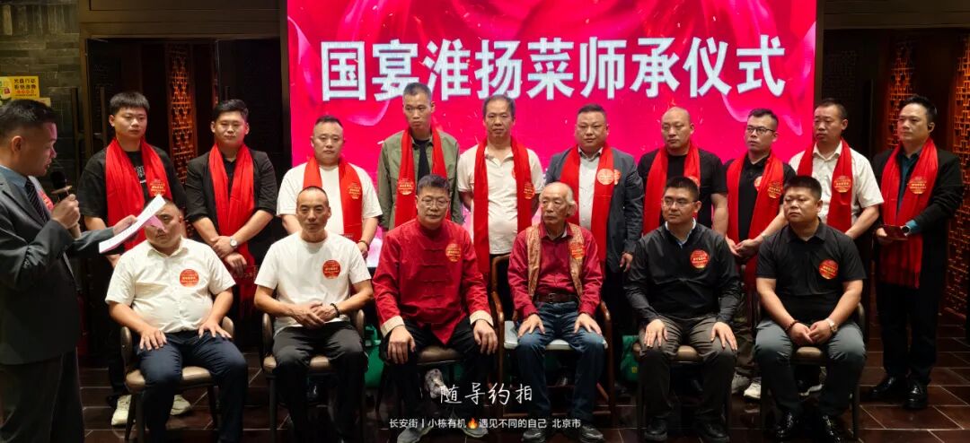 本次活动不仅是一场美食文化的盛宴,更是一次传统厨艺传承的重要时刻,活动现场,朱永松大师正式收下十位入室弟子:陈兴业、张祥领、吴辉、张伟、唐桂全、李浩、萧伟昌、朱刚辉、戎成安、陈卫。在庄重的拜师仪式上,十位弟子齐声宣读师门誓词:'我志愿加入师门,严格遵守师训,谨记师父教诲,以匠心守初心,以精工求至味,以平和赢天下,治大国若烹小鲜,五味调和百味香,为餐饮立境界,为行业传精神。'国宴传承百人团魏全顺、李勇、严伟、牛建鹏等四位代表作为见证人出席了此次师承仪式。