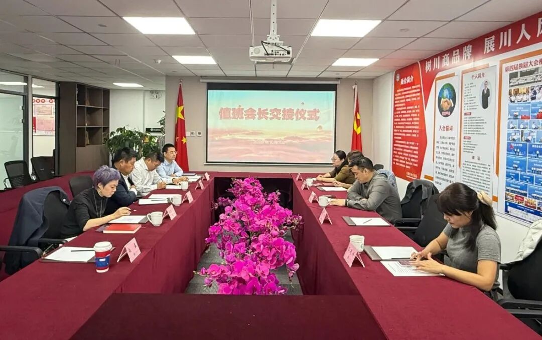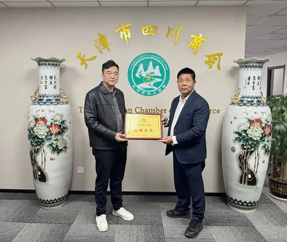 2025年10月11日,天津市四川商会召开四季度值班会长交接仪式,三季度值班会长、执行会长吴一平,四季度值班会长、执行会长雷林,9月值班小组成员、副会长王凤平,理事钟玉梅,10月值班会长、常务副会长周四平,10月值班小组成员、理事何海涛,副秘书长李超凡,办公室主任赵鑫,办公室专员张睿参加了本次活动。