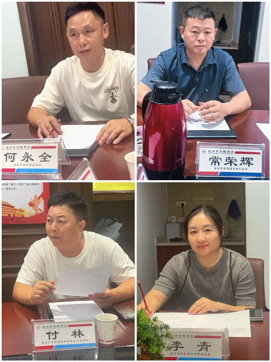 2025年10月10日(周五),温州市资阳商会二届第四次筹备会议在商会办公室如期举行。商会会长何永全,执行会长常荣辉,秘书长付林,常务副会长李青,副监事长鄢勇,副会长翟广、吕智兵、唐红梅、康刚、邵顺国、方锐,龙湾片区长黄仁勇及办公室主任徐艳列席会议。会议由秘书长付林主持。