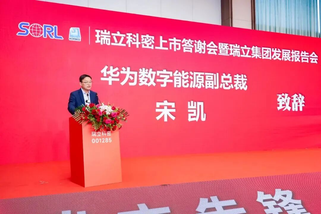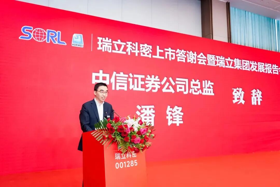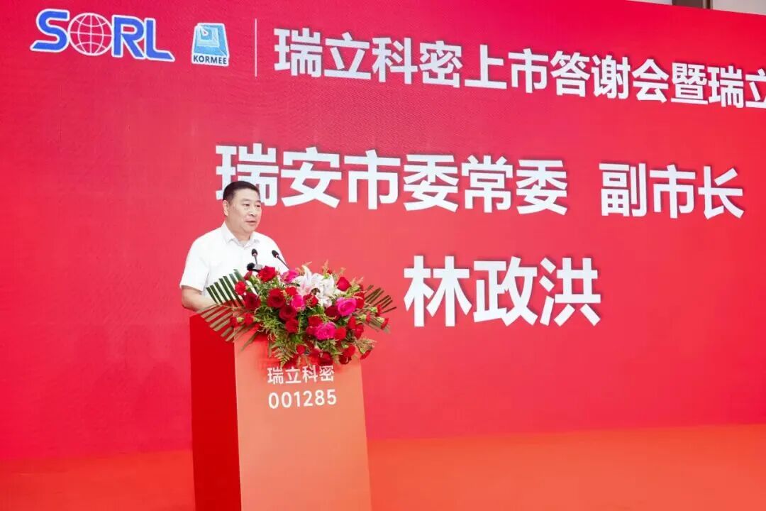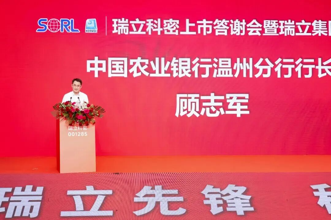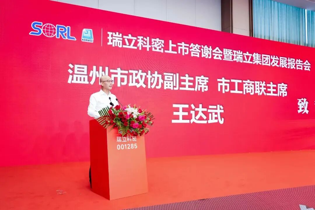 温州市政协副主席、市工商联主席王达武对瑞立科密上市表示祝贺。他指出,瑞立作为“温州制造”的优秀代表,以“一业为主、适度多元经营、多元投资、专业管理”的发展格局,充分发挥链主企业的带动作用引领汽摩配产业升级。瑞立科密的成功上市,既是企业自身的跨越,更是温州民营企业拥抱资本市场的生动典范。他希望瑞立以此次上市为契机,持续增强核心竞争力,做大资本市场“瑞立板块”。瑞安市委常委、副市长林政洪在致辞中强调,瑞立科密的上市,是瑞立集团发展战略的单点突破,也是瑞安汽零产链跃升新的起点。瑞立科密从被瑞立集团收购到成功上市的历程,是瑞安“凤凰行动”的鲜活实践。瑞安市政府将始终打造最优营商环境,支持更多像瑞立这样的企业扎根发展,共同提升瑞安汽零产链企业、技术和产品在行业价值链中的话语权。中信证券公司总监潘峰在致辞中表示,瑞立在业务拆解、核心赛道聚焦及IPO攻坚中展现的“战略定力”“实干韧性”“开放共赢”令人印象深刻。中信不仅协助其完善治理与合规体系,更精准把握申报窗口,助力高效上市;未来将以全链条资本服务,陪伴瑞立深耕资本市场、链接产业链资源。华为数字能源公司副总裁宋凯在致辞中提及双方9月达成的兆瓦级超充生态合作,称其是响应“双碳”战略的务实举措。他指出,华为与瑞立都创办于1987年,在研发、品质理念上高度契合,期待与瑞立深化合作,联合开发解决方案,拓展全电物流、光储充领域,彰显“中国智造”力量。