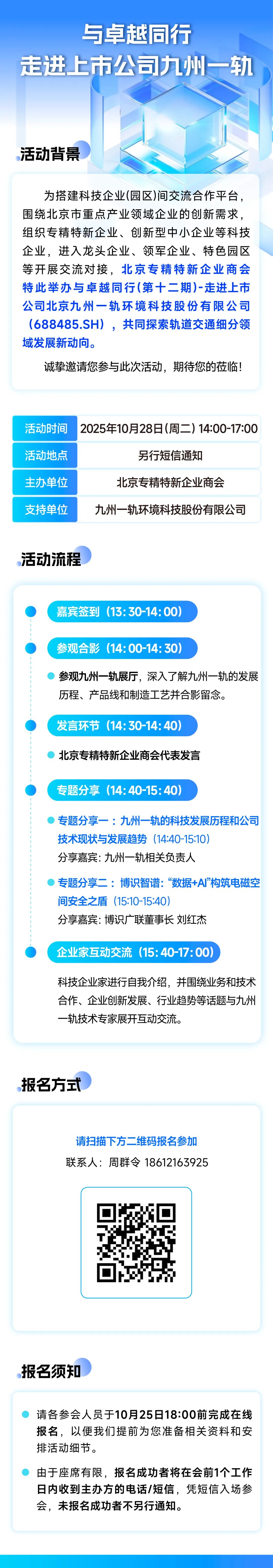 活动邀请丨与卓越同行(第十二期)—— 走进上市公司九州一轨