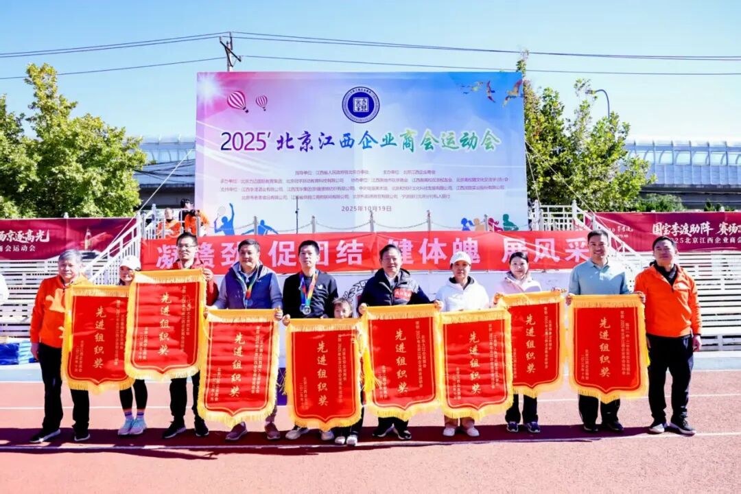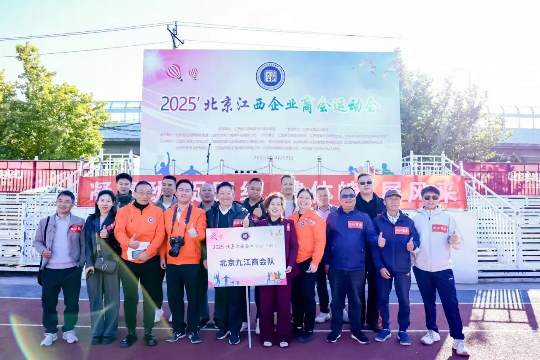 为积极响应全民健身号召,深化在京赣商交流协作,2025年10月19日上午,北京江西企业商会联合江西各地市在京商会、高校校友会及赣文化学(协)会,在北京力迈国际学校隆重举办"凝赣劲、促团结、健体魄、展风采"主题趣味运动会。北京九江企业商会由秘书长苏堂孝领队,组织25名会员组成代表队参赛,以饱满热情和拼搏精神斩获佳绩,并荣获"优秀组织奖"。