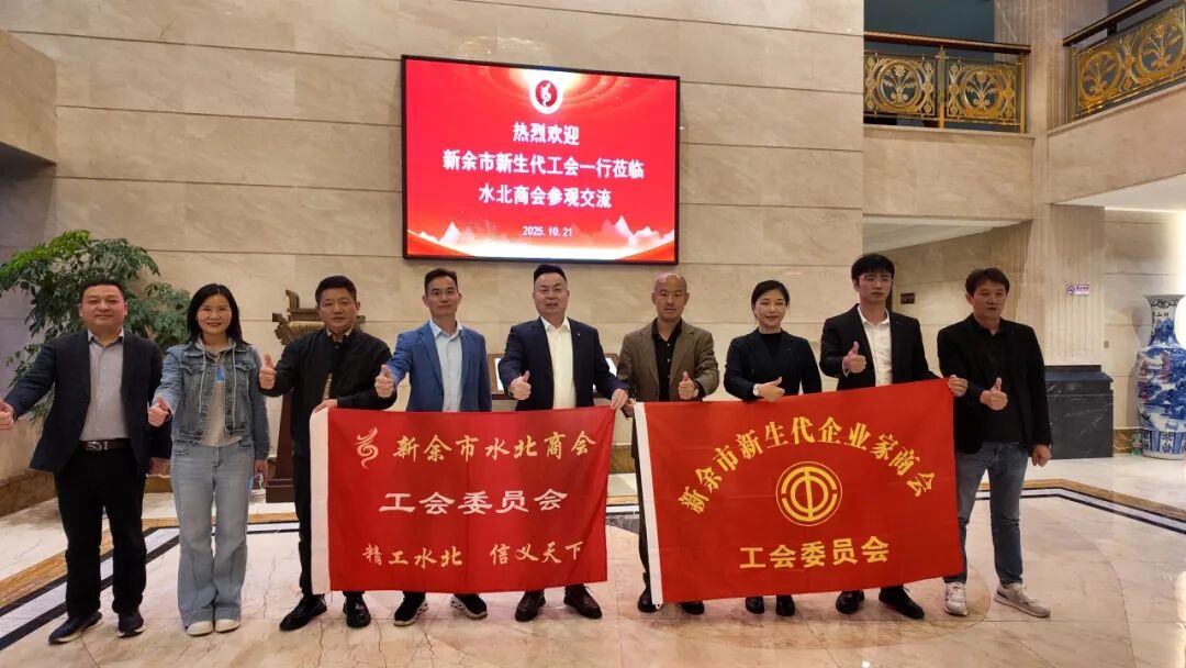 10月21日下午,新余市新生代企业家商会工会主席李文凯率领由工会核心班子成员组成的代表团,莅临水北商会开展交流学习活动。水北商会工会主席傅浪杰,工会副主席邹强及工会委员陈志平、陈晓利对代表团的到来给予了热情接待。