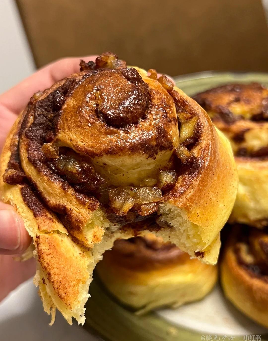 推荐理由:肉桂卷口感轻盈酥脆,肉桂味香不腻,甜度适中,适合秋冬食用。