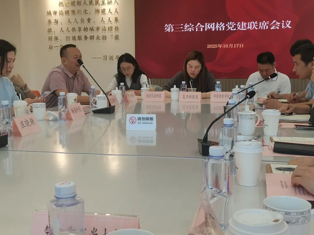 为深化党建联动,进一步关心帮助企业发展、推动协调解决问题,近期,五角场街道第三综合网格于党群服务中心召开了以凝聚企业资源、优化营商环境为主题的党建联席会议。会议邀请到了区人大代表、复旦大学采购与招标管理中心副主任庄晓漪出席会议,为辖区经济社会发展、网格治理工作建言献策。复旦科技园、杨浦科创、天益宾馆等区域化单位相关负责同志,复旦微电子、依科绿色工程、安可科技等两企三新党组织相关负责同志参加会议。上海市资阳商会党支部书记唐作超受邀出席。