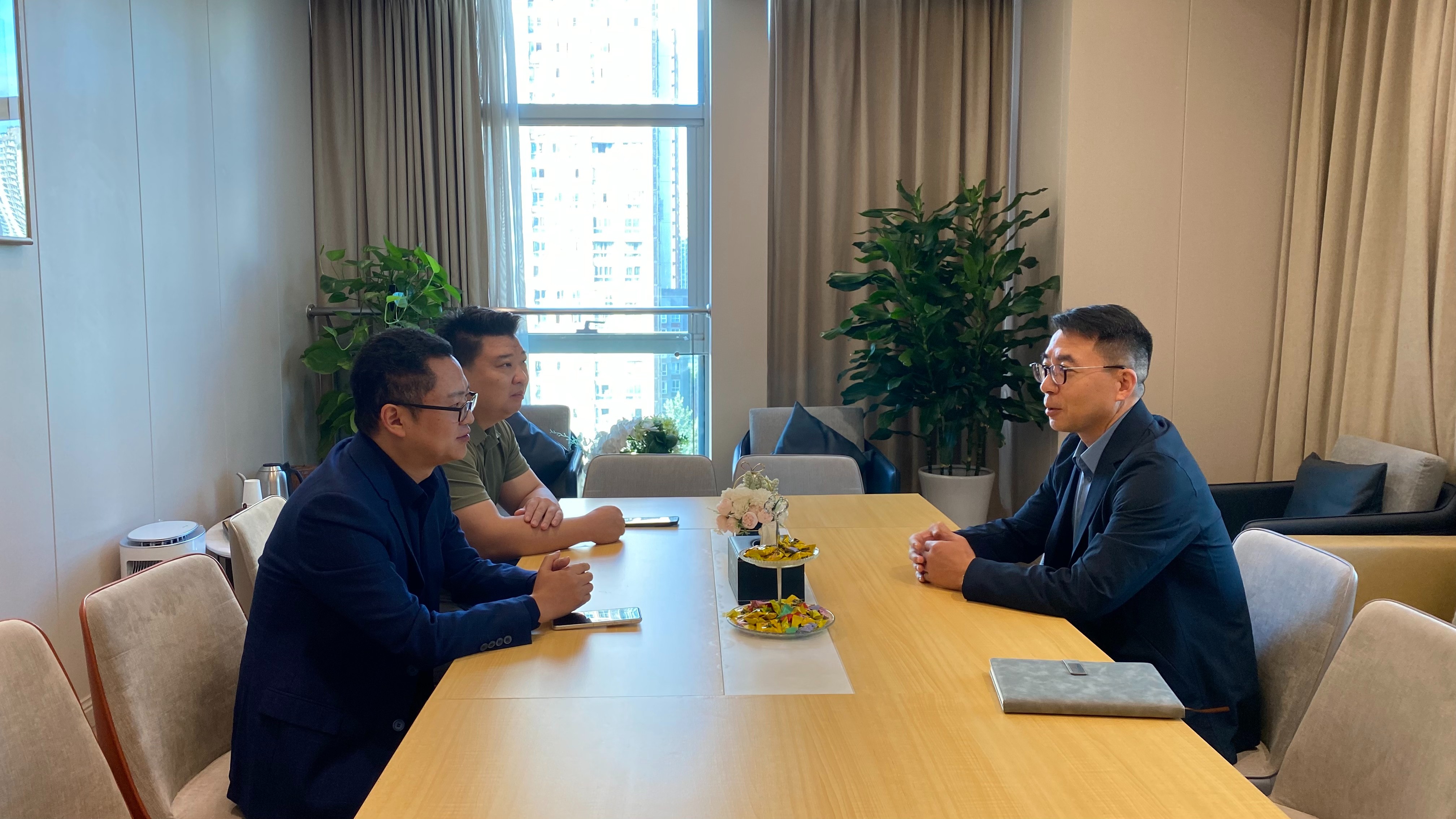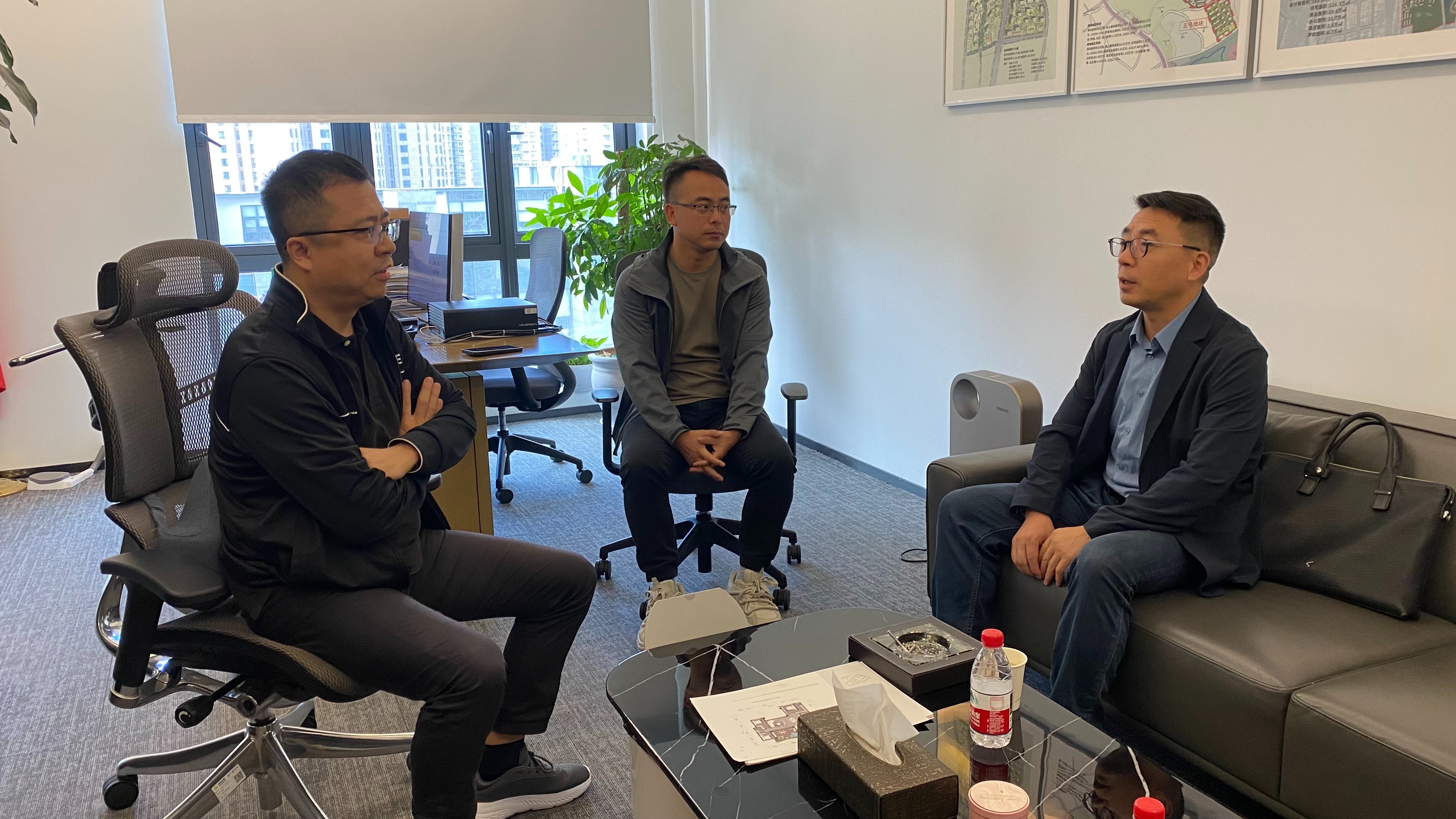 接着,龙贻军一行走访了绿地集团重庆置业有限公司,与公司总公司总经理、商会常务副会长刘杰和公司副总经理王根军进行了交流。