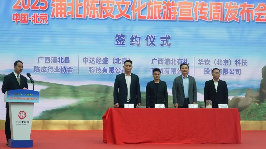 发布会上,浦北县委书记杨永冲在致辞中表示,此次发布会将拉开了浦北陈皮唱响品牌、走向全国、迈向世界的大幕。县委副书记方国贺发布了2025年浦北陈皮文化旅游宣传周的总体安排。会议通过云端智链进行了浦北陈皮数字化仓储连线,展示了浦北陈皮标准化储存、智能化管理的情况。中国茶叶流通协会副会长姚静波表示,协会将为浦北陈皮对接更多茶企资源,推动“茶+陈皮”产业标准研究与市场推广。国务院国资委商业饮食服务业发展中心主任张艳彬提到,陈皮相关产业得到国家政策支持,陈皮被列入国产复方配伍保健食品备案试点产品原料清单,为产业下游应用拓展了新空间。会议还进行了签约仪式。我商会副会长、华饮(北京)科技股份有限公司董事长李卓澄与主办方进行了合作签约并接受采访,他表示,陈皮产业正步入蓬勃发展的大好时机,是难得的一次发展商机,他建议可重点关注。
