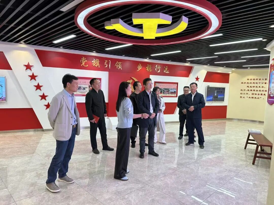 调研团阵容强大,汇聚了土木工程与力学学院力学与工程科学系教工党支部书记韩同伟,土木工程与力学学院智能建造与工程管理系教工党支部书记温修春,土木工程与力学学院工会副主席张秀丽等骨干力量。在商会展厅,讲解员甘小芳向嘉宾们生动讲述了商会从创立到发展的奋斗历程,重点展示了“商会+党建”的创新发展路线。
