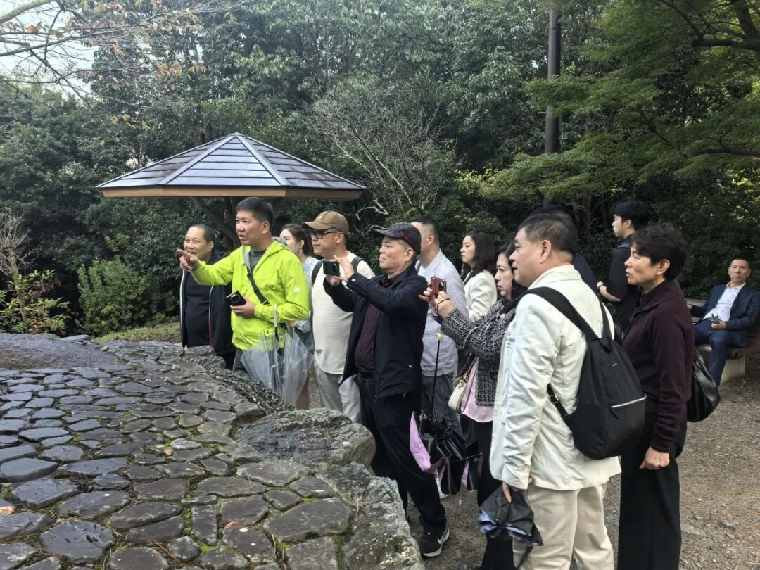 在岚山,考察团专程参观了周恩来总理纪念诗碑,聆听1919年周恩来东渡日本求学期间,在此写下《雨中岚山》的历史故事——诗句中“一线阳光穿云出”的意境,不仅是对岚山美景的描绘,更承载着先辈探索救国之路的初心。会长们表示,此次岚山之行不仅是文化体验,更是一次深刻的精神洗礼。
