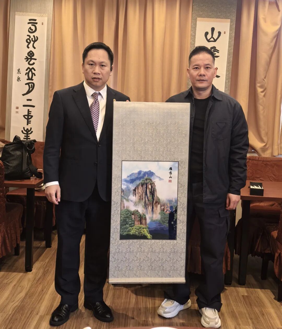 我会向日本温州总商会赠送礼物(左唐升克、右谢庆好)