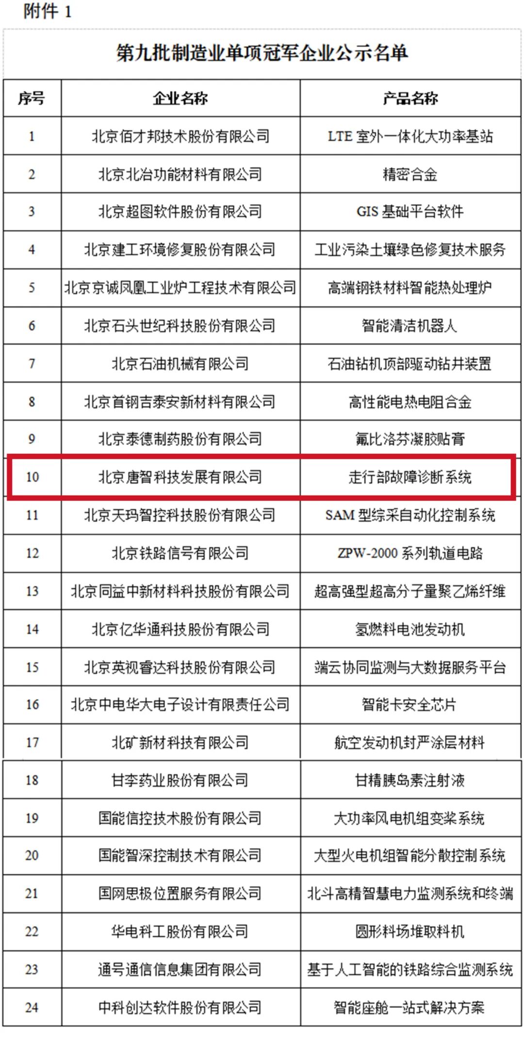 商会常务副会长单位唐智科技荣登第九批制造业单项冠军企业公示榜单