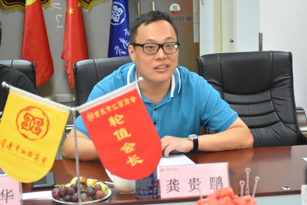 座谈会开始,商会党支部书记/常务副会长龚贵鹏、抚州市高新区党工委副书记、管委会主任曾月兴分别介绍了今天的参会人员。紧接着,座谈会上分别播放了商会十周年庆的宣传片及抚州市高新区招商宣传片。随后, 秘书长聂中华从商会领导班子建设、商会主要工作、党建建设、风险防控措施及下步发展梦想等方面介绍了商会情况。秘书长讲话谈到:感谢家乡领导一行莅临商会考察指导,经济服务作为市工商联赋予商会六大职能之一 ,搭建桥梁纽带、服务赣渝经济建设是我们商会一个主要工作内容,商会自第三届以付建忠为会长的领导班子换届以来,一直坚持“团结互助、协作共赢”的办会宗旨,紧紧依靠“会员办会、服务立会、团结兴会、实干强会、制度管会、以商养会”的发展理念,目前商会会员获得感较强,商会在重庆商(协)会中排名靠前,发展良好。