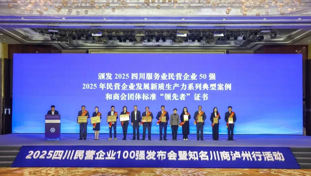 会上,宣读了《四川省工商业联合会关于 2025 年民营企业发展新质生产力系列典型案例和商会团体标准“领先者”名单的通报》;为“2025四川民营企业100强”“2025四川制造业民营企业100强”“2025四川服务业民营企业50强”“2025四川研发投入100家”“2025年民营企业发展新质生产力系列典型案例和商会团体标准‘领先者’”等企业代表颁发了证书。泸州市政府副市长任晓波作了产业投资推介。中共成都市委党校经济学教研部副主任、副教授,四川省营商环境咨询委员会专家委员童晶,以及建设银行四川省分行副行长代建勇作主旨演讲;省工商联副主席、四川金象赛瑞化工股份有限公司总裁唐印,泸州市工商联副主席、四川郎酒股份有限公司副总经理罗文伟作交流分享。会前,参会人员赴泸州城市规划展览馆、泸州港、郎酒浓酱兼香产区考察调研;会后还将赴泸州相关区县考察调研。
