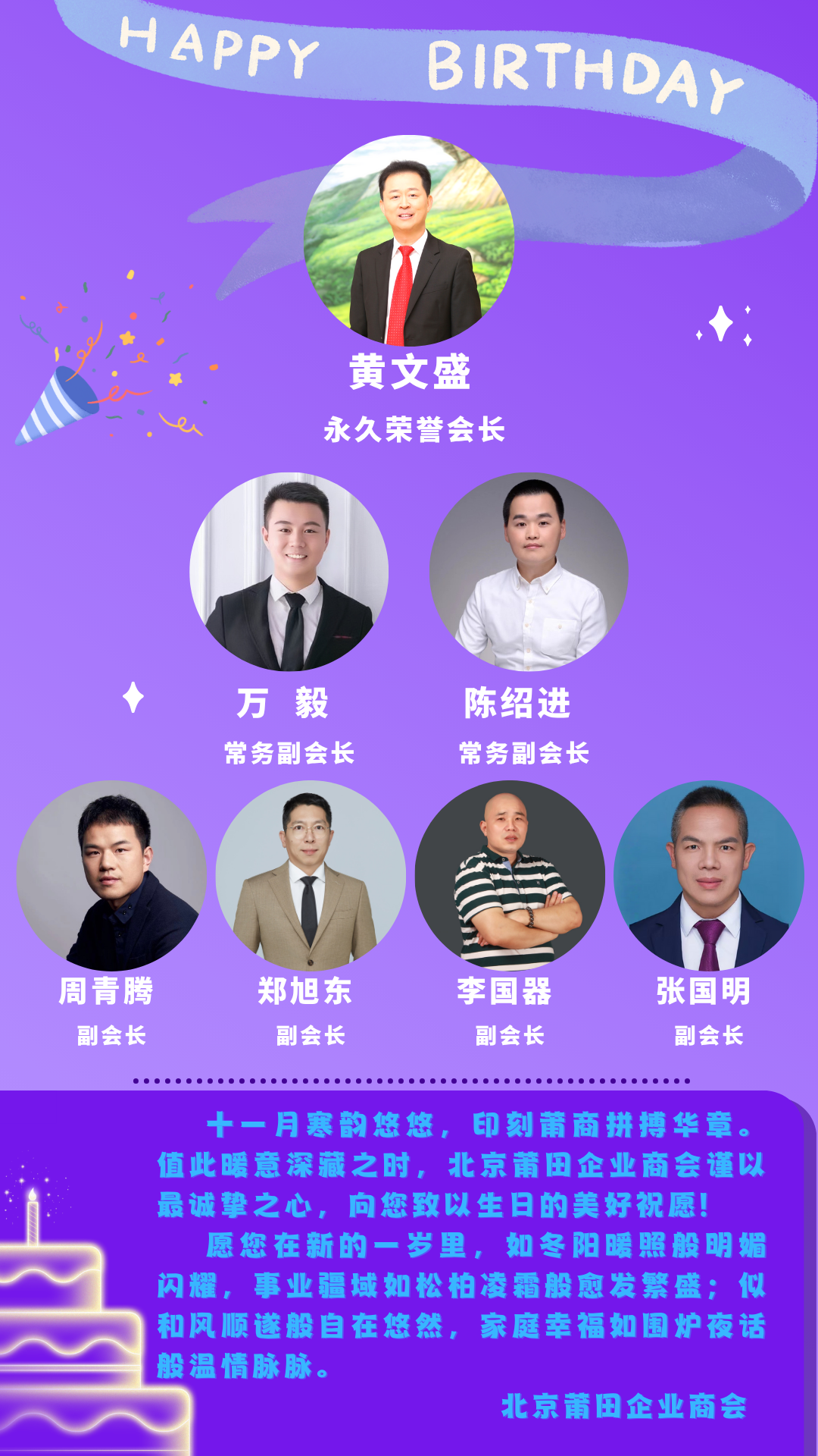 北京莆田企业商会恭祝十一月份生日的商会领导生日快乐!