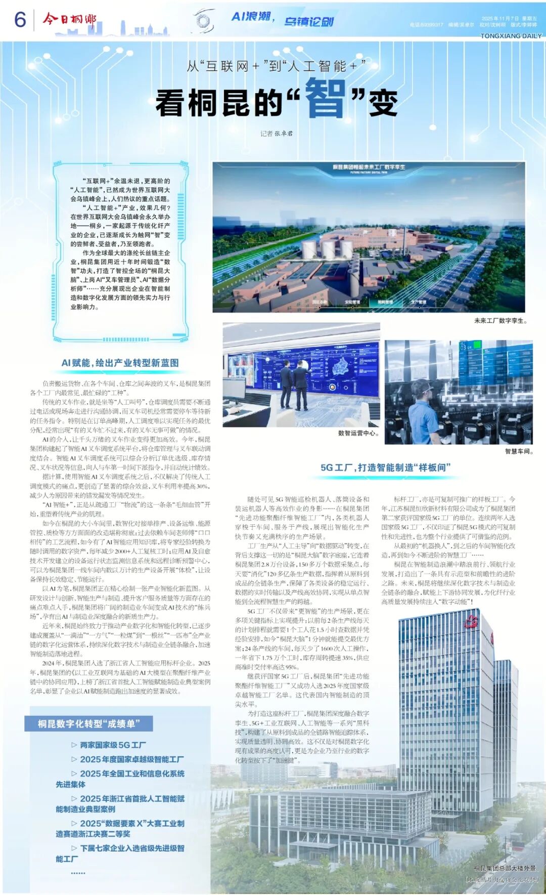 《今日桐乡》刊登桐昆集团数字化成果专版