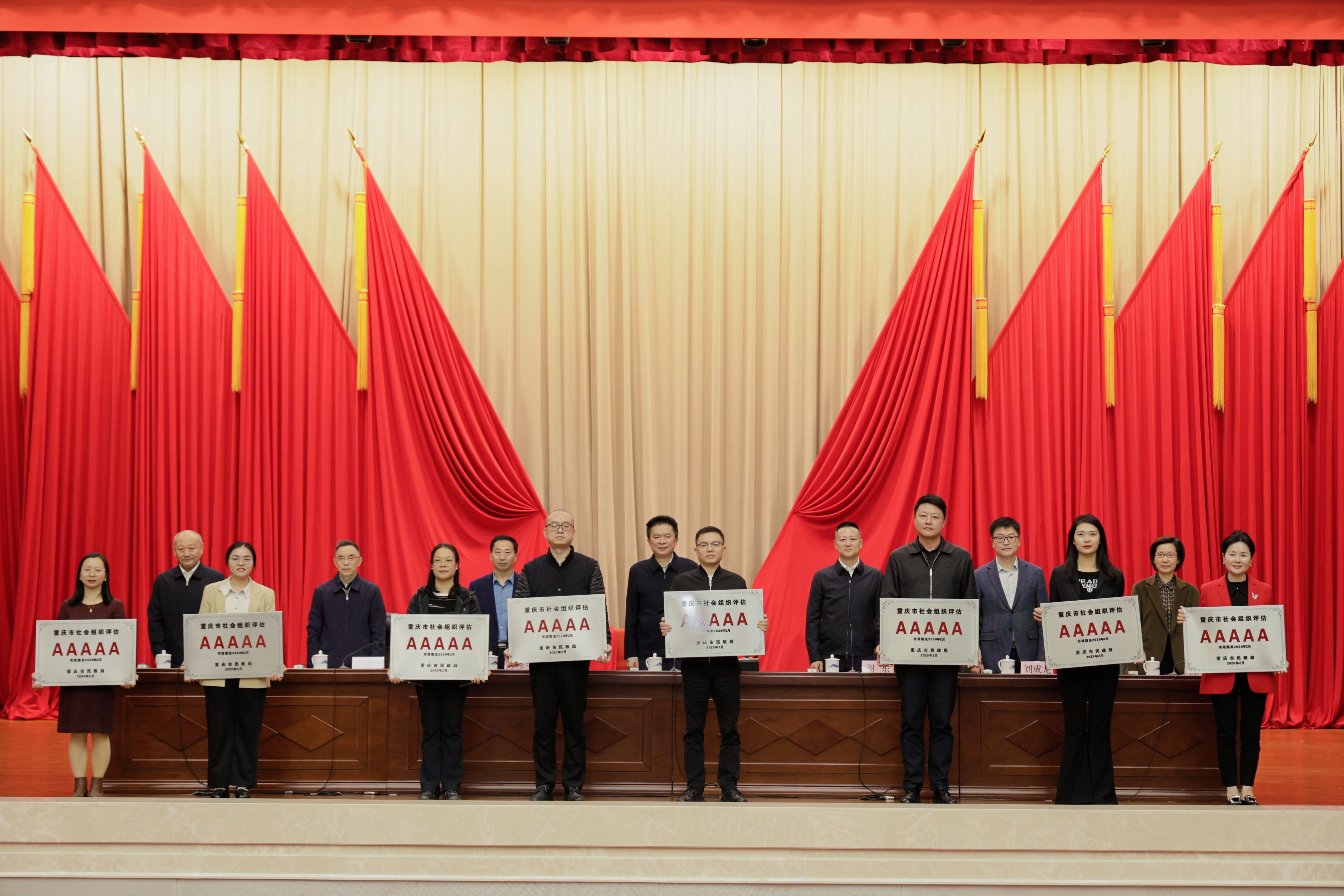 回溯过往数月,自2024年度社会组织评估结果公布、我会获评 5A 商会以来,全体成员既为这份荣誉倍感振奋,也对“正式授牌” 充满期待。此次全市社会组织高质量发展大会,不仅是一场社会组织交流的盛会,更成为我会荣誉“转正”的重要舞台 —— 当重庆市民政局、渝中区政府等相关领导将镌刻着“5A 商会”的牌匾郑重交到商会代表手中时,既是对我会过往工作的肯定,更是对这份荣誉“实至名归”的见证。