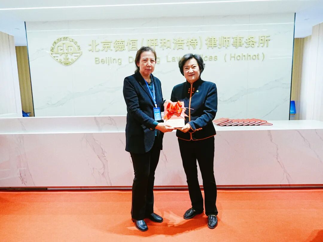 揭牌仪式后,现场举行了赠书环节。王丽主任向北京德恒(呼和浩特)律师事务所赠送了两份沉甸甸的礼物:凝聚德恒三十年智慧与精神的文化著作《德恒之道》,以及记载服务“一带一路”建设实践与成果的《一带一路服务机制年鉴(10卷本)》。