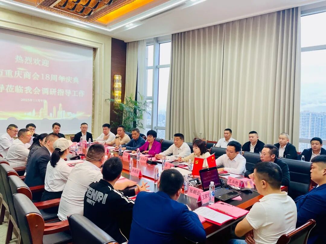 会上,会长刘小林首先代表温州市重庆商会对调研团的到来表示热烈欢迎,并详细介绍了商会发展情况。他提到,商会自成立以来始终坚守 "服务会员、链接两地、共谋发展" 的初心,通过 "五心服务"为在温渝商保驾护航。从商会成立之初的凝心聚力,到如今形成覆盖温州各区县的片区会员网络;从搭建政企沟通桥梁,到打造 "资源共享、互助共赢" 的会员服务平台,生动展示了商会的凝聚力与发展活力。商会积极主动践行社会责任,为温州与重庆两地的社会经济高质量发展注入持续动能。