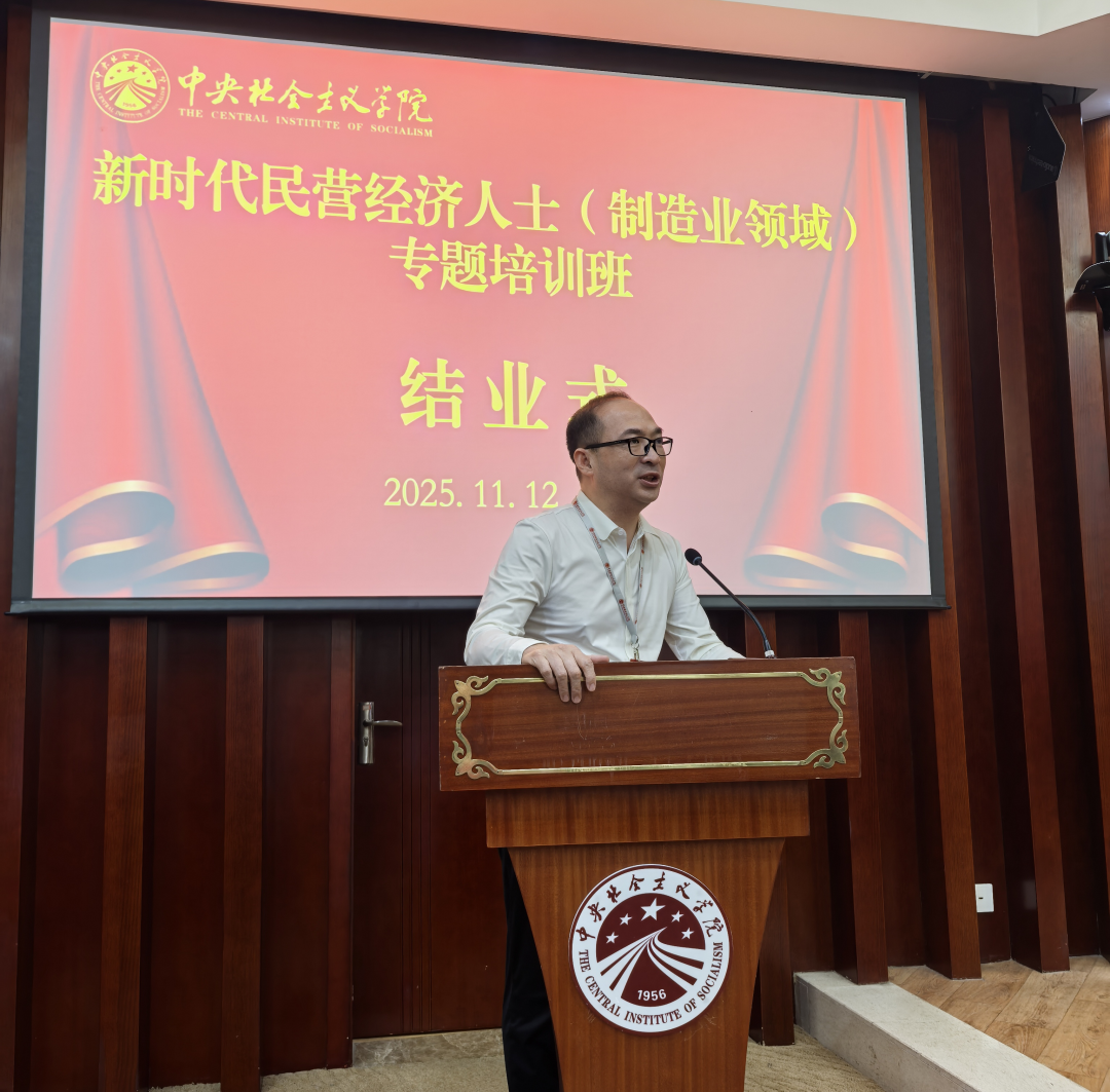 2025年11月11日,中国民营经济国际合作商会副会长、永荣控股集团董事长吴华新受邀出席由中华全国工商业联合会主办的“新时代民营经济人士(制造业领域)专题培训班”,并作题为《结构化转型和战略升维》的专题报告。本次培训主要针对“2025中国制造业民营企业500强”中的部分企业负责人,中华全国工商业联合会宣传教育部部长李飞出席本次活动。
