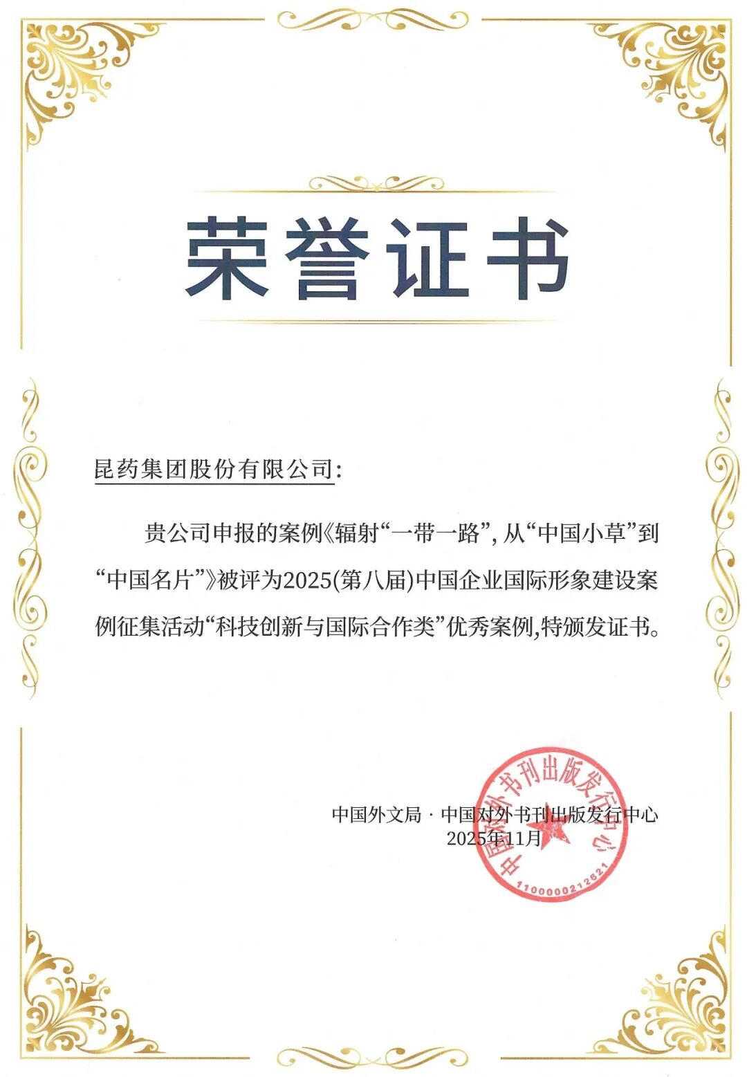 会员动态丨昆药集团入选2025中国企业国际形象建设优秀案例奖