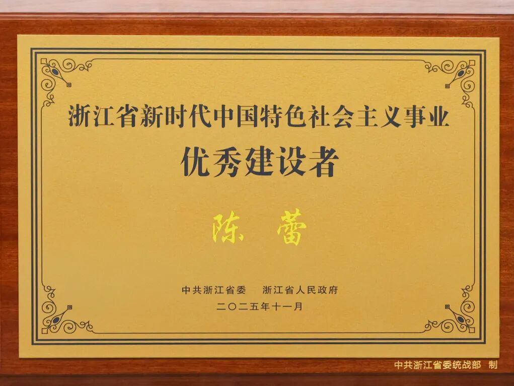 ▲陈蕾董事长荣膺“浙江省新时代中国特色社会主义事业优秀建设者”荣誉称号