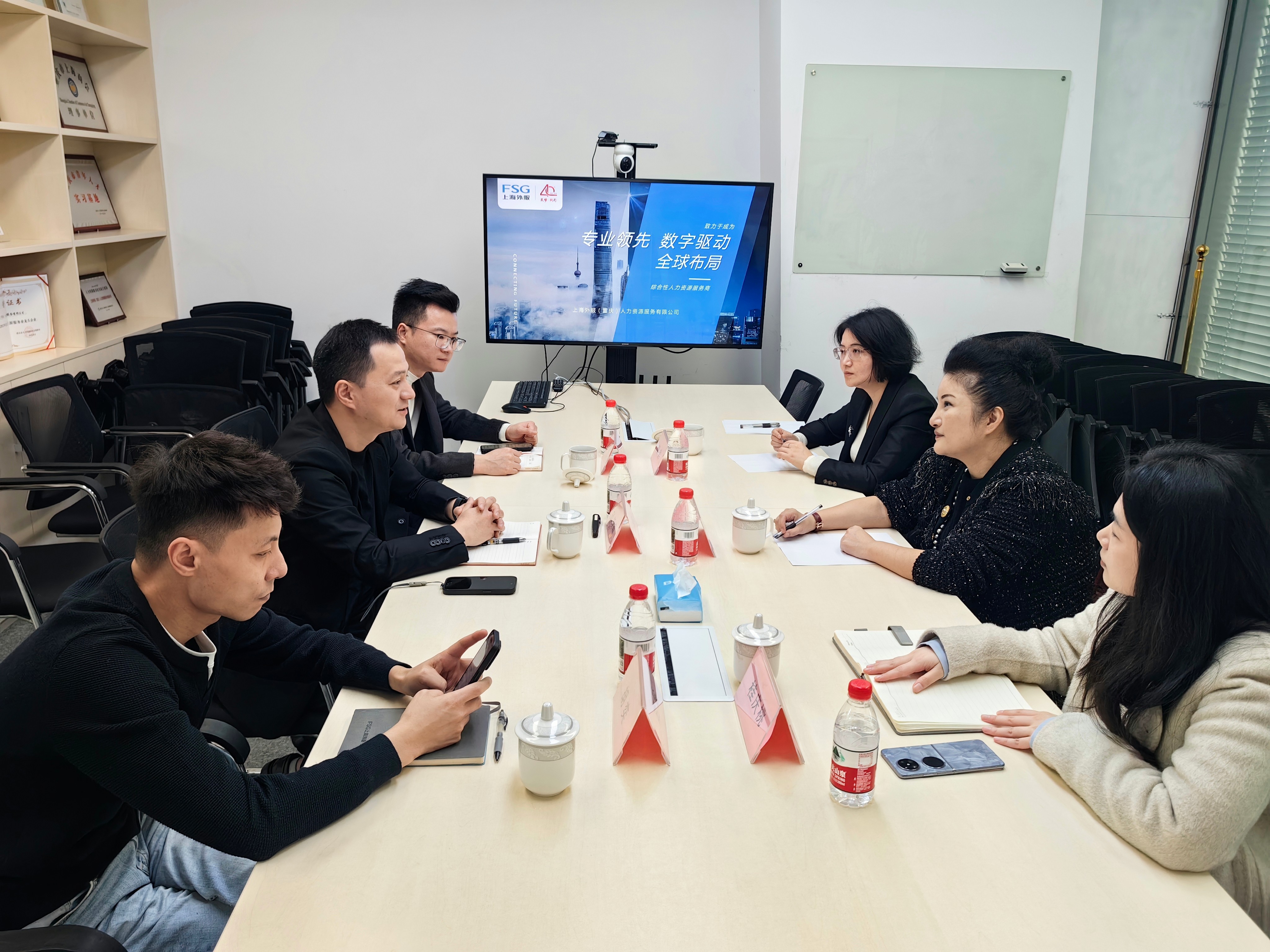 随后,吴一奕一行走访上海外服(重庆)人力资源服务有限公司,商会常务副会长、青委会主席、公司总经理邱晓峰热情接待。