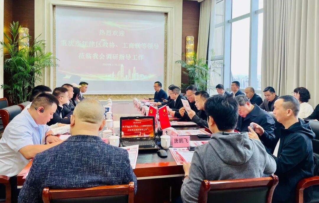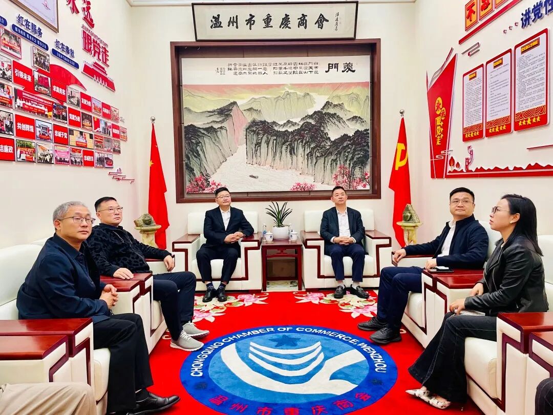 11月13日下午,重庆市江津区政协党组成员、副主席梁其凯,重庆市政协委员,江津区政协党组成员、工商联主席、重庆祥瑞控股集团有限公司董事长邹勇,重庆市江津区委统战部副部长,工商联党组书记、常务副主席夏志刚,温州市工商联党组成员、秘书长周志斌等两地领导一行,莅临温州市重庆商会考察指导工作。