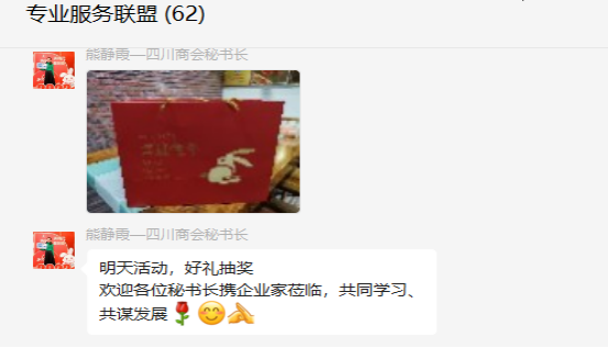 研习前一天,熊秘书长展示了承办方的姿态,在服务联盟微信群发出邀请,“明天活动,好礼抽奖,欢迎各位秘书长携企业家莅临,共同学习、共谋发展!”还附上了奖品图。