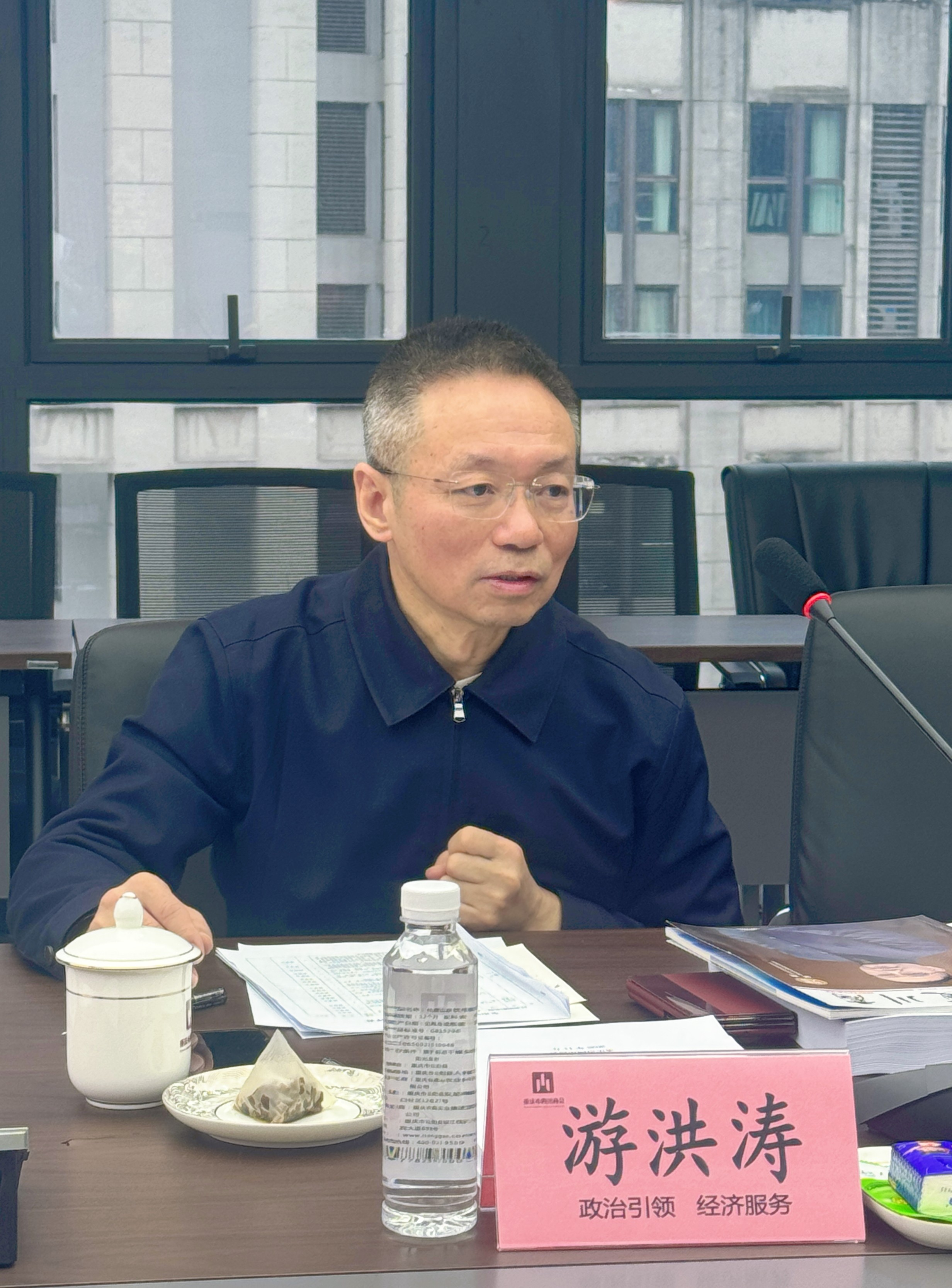 最后,党委书记、会长游洪涛作总结讲话,既肯定前期工作成效,也明确后续攻坚方向。他首先对秘书处团队的付出给予高度认可:“自 5A 创评筹备工作启动以来,秘书处牵头抓总、主动作为,从政策文件收集梳理,到前期工作进展梳理,再到重点任务拆解,每一项工作都做得扎实细致。特别是熊静霞秘书长带领团队,不仅精准解读了民政部门的评估要求,还结合商会实际梳理出工作重点,为今天会议的高效召开打下了很好的基础。这种认真负责、精益求精的态度,正是我们推进创评工作的重要保障,值得全体同仁学习。”