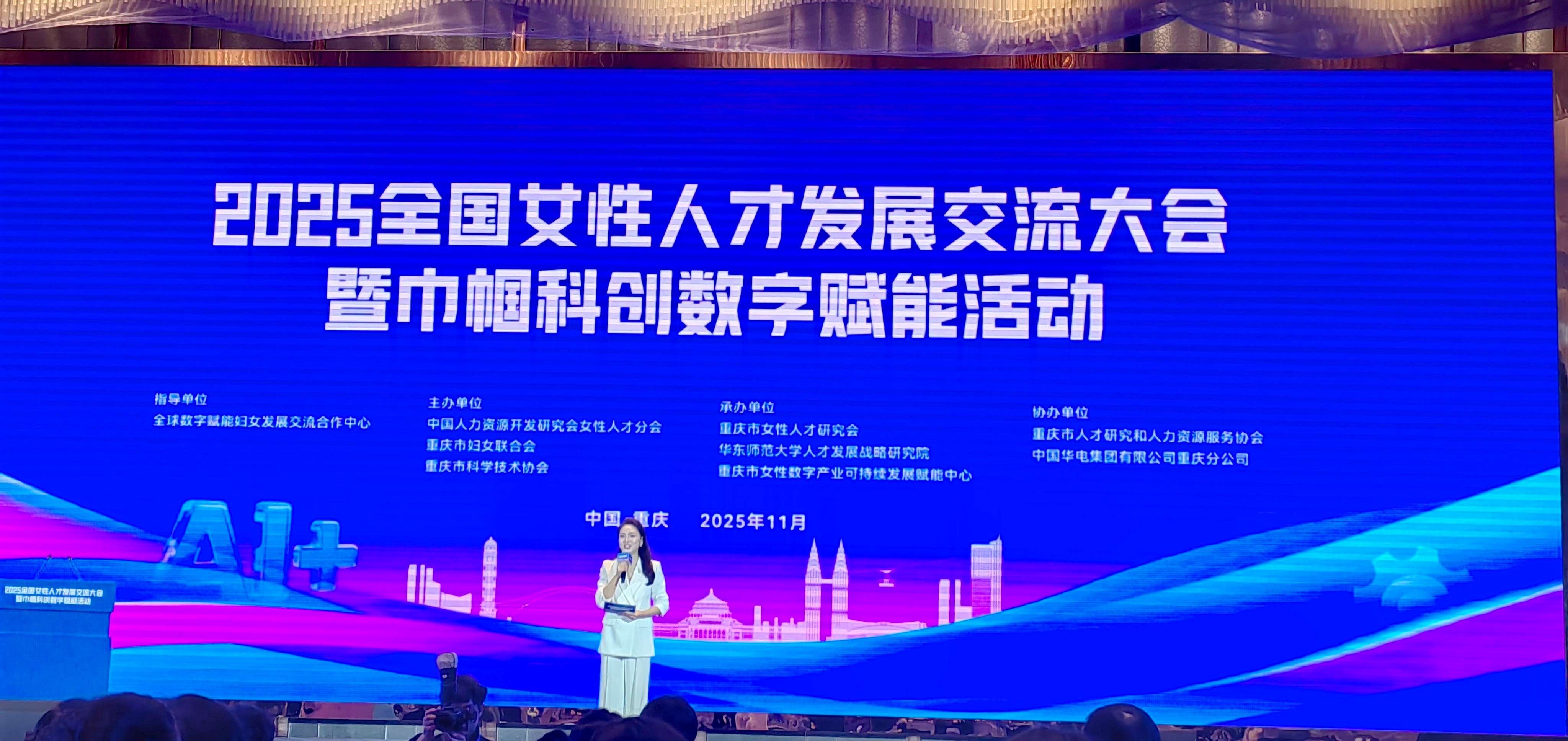 活动主旨演讲环节中,多位权威专家围绕女性发展与科创赋能展开深度分享。全国政协委员、中国人力资源开发研究会女性人才分会理事长吴瑞君以《全球视野下女性学者的发展困境与破局路径》为题,剖析了女性在学术领域的发展现状与突破方向;华东师范大学上海人工智能金融学院院长邵怡蕾在演讲中提出,AI技术能够有效打破性别壁垒,为女性创造更公平的竞争环境;中国华电集团有限公司重庆分公司党委书记黄平则结合能源产业转型实践,阐述了女性在绿色科技研发与管理创新中的独特优势与重要作用。