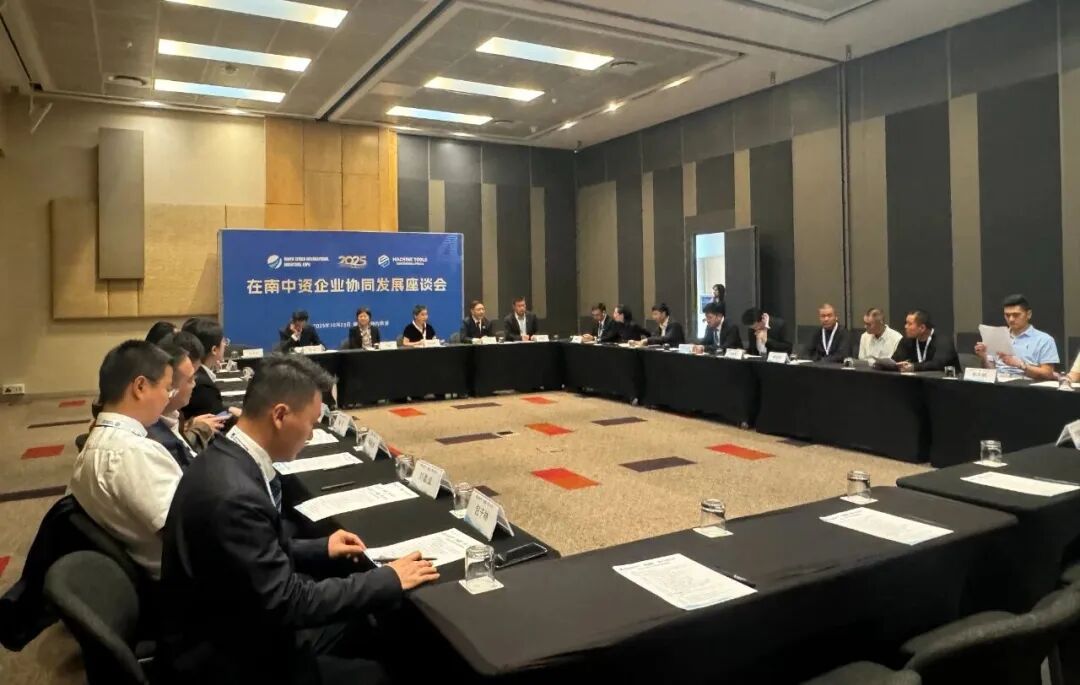 10月23日,在第四届南非国际工业展期间,中非民间商会在约翰内斯堡组织召开了“在南中资企业协同发展座谈会”,中国驻南非大使馆刘峪公参与在南中资企业代表出席座谈会,刘峪公参与在南中资企业进行深入交流,听取企业在南发展情况,并就如何深化本地化经营、规避投资风险、加强政企沟通等议题提出指导意见。座谈会同时举办“金属加工、精密机床”“G20和金砖框架下的非洲工业化”两场专题研讨和“中国智造+非洲机遇交流对接会”。吸引来自金砖国家及非洲多国的政府代表、行业协会与企业负责人参与,深入探讨区域产业合作路径。聚焦智能制造与非洲市场需求的融合路径,达成多项技术合作与市场拓展意向,推动中国高端工业装备与非洲本地化生产需求有效对接。出席会议活动的还有中非民间商会副会长、山东中洋实业集团总经理郝爱军,中非民间商会专职副秘书长王江,中国国际贸易促进委员会驻南非代表处首席代表、南中经贸协会副会长路鸣、南部非洲国家中资企业协会会长李国东及40余家企业代表。