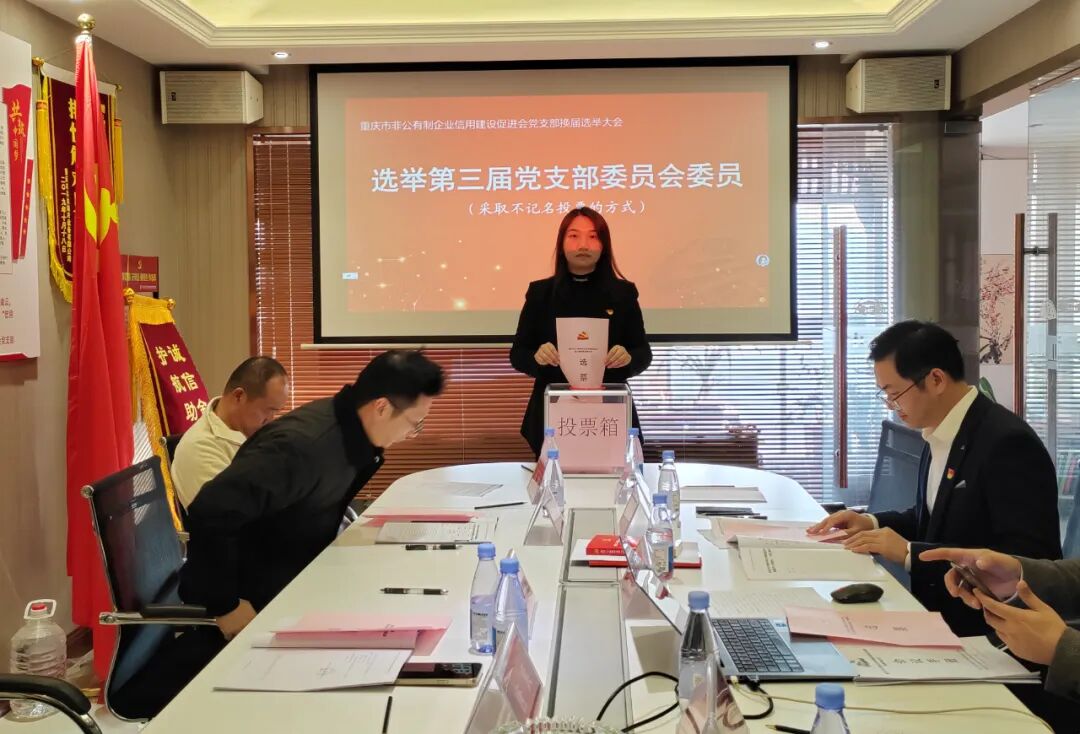 2025年11月26日,重庆市非公有制企业信用建设促进会党支部换届选举大会在促进会会议室圆满召开。大会严格遵循《中国共产党章程》《中国共产党基层组织选举工作条例》规定,选举产生第三届党支部委员会,为促进会持续以党建引领民营经济信用建设注入新动能。