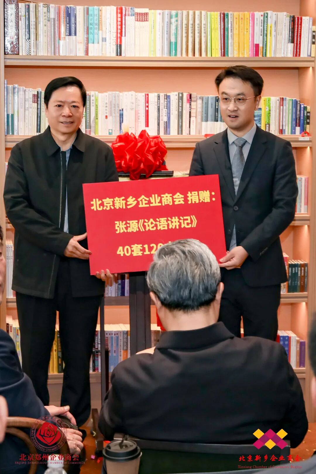 自发起捐书倡议以来,得到了各界乡贤、商会会员的积极响应与大力支持,累计募集纸质书籍1126册、电子书籍捐赠20万册,涵盖历史、文学、健康、管理等多个领域,内容丰富、品类齐全。现场,北京新乡企业商会捐赠精选图书——《论语讲记》120本,为书社建设添砖加瓦。