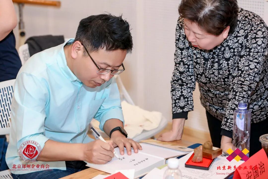 北京异地商会第二联合党委党务工作者袁 媛、北京安徽企业商会宣传部部长张 莲、北京河南企业商会执行会长兼秘书长岳 皞、北京河南企业商会执行会长、北京洛阳企业商会会长周胜利、北京河南企业商会轮值常务副会长兼秘书长周 剑、北京三门峡企业商会会长高定局、北京焦作企业商会会长安国治、北京开封企业商会会长赵天柱、北京安阳企业商会会长武尚涛、北京濮阳企业商会会长陆 民、北京鹤壁企业商会会长李洪政、北京河南企业商会平顶山分会会长赵合宇、北京周口企业商会常务副会长王 伟、北京南阳企业商会副会长金建业;承办方郑新商会融合体李梓正会长、丰善禄会长、执行会长:卫新锋、周在俭、常务副会长:常志亮、杨流科、副会长:赵帅阳、闫 明、冯胜彬、党 波、苏传威、朱 奇、任全涛、执委会:袁瑜含、张 亮、理事:苏丽娜、李明秋等乡贤领导、豫籍在京商会企业60余人齐聚一堂,以书为媒、以文会友,共赴一场兼具文化底蕴与公益温度的思想盛宴。