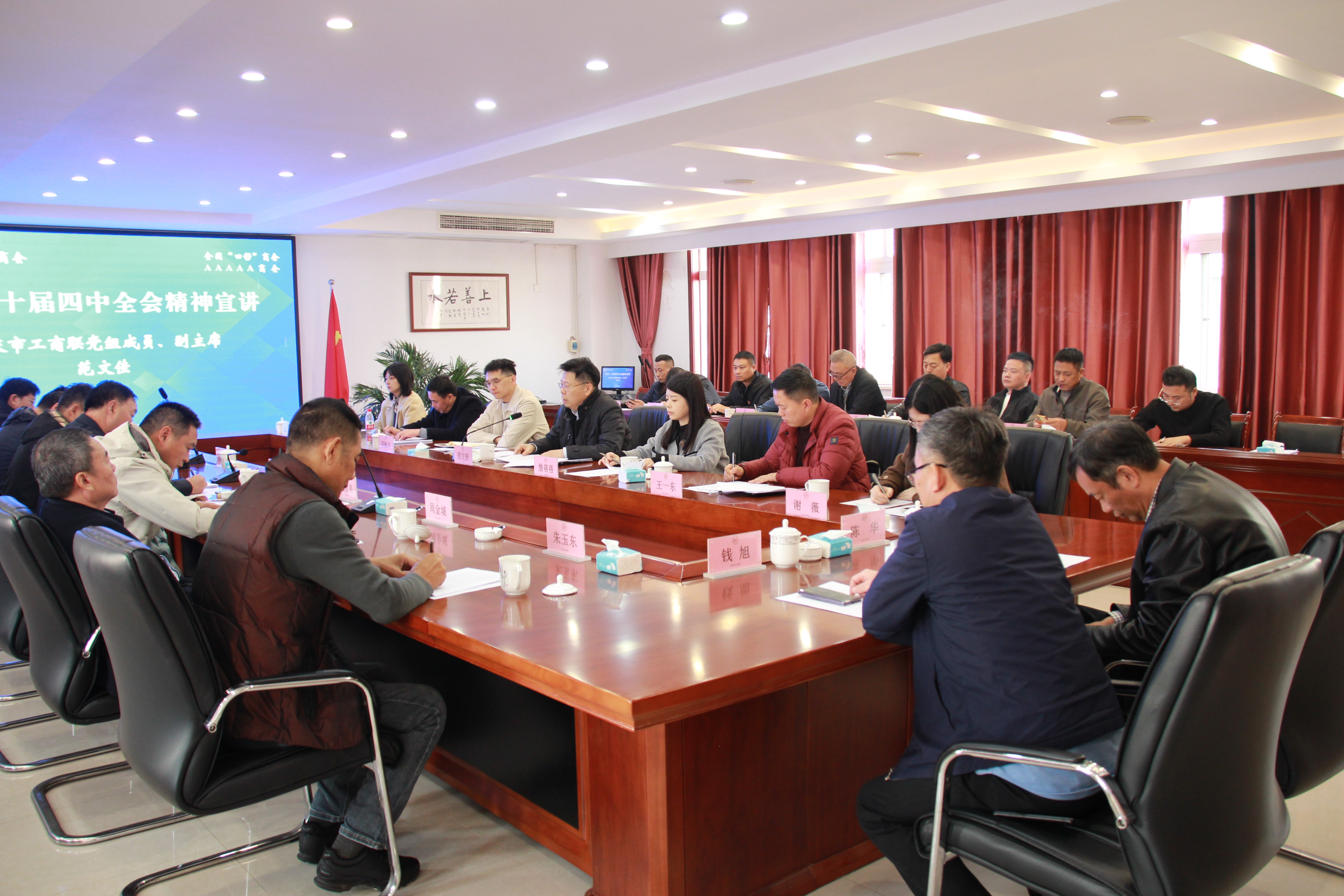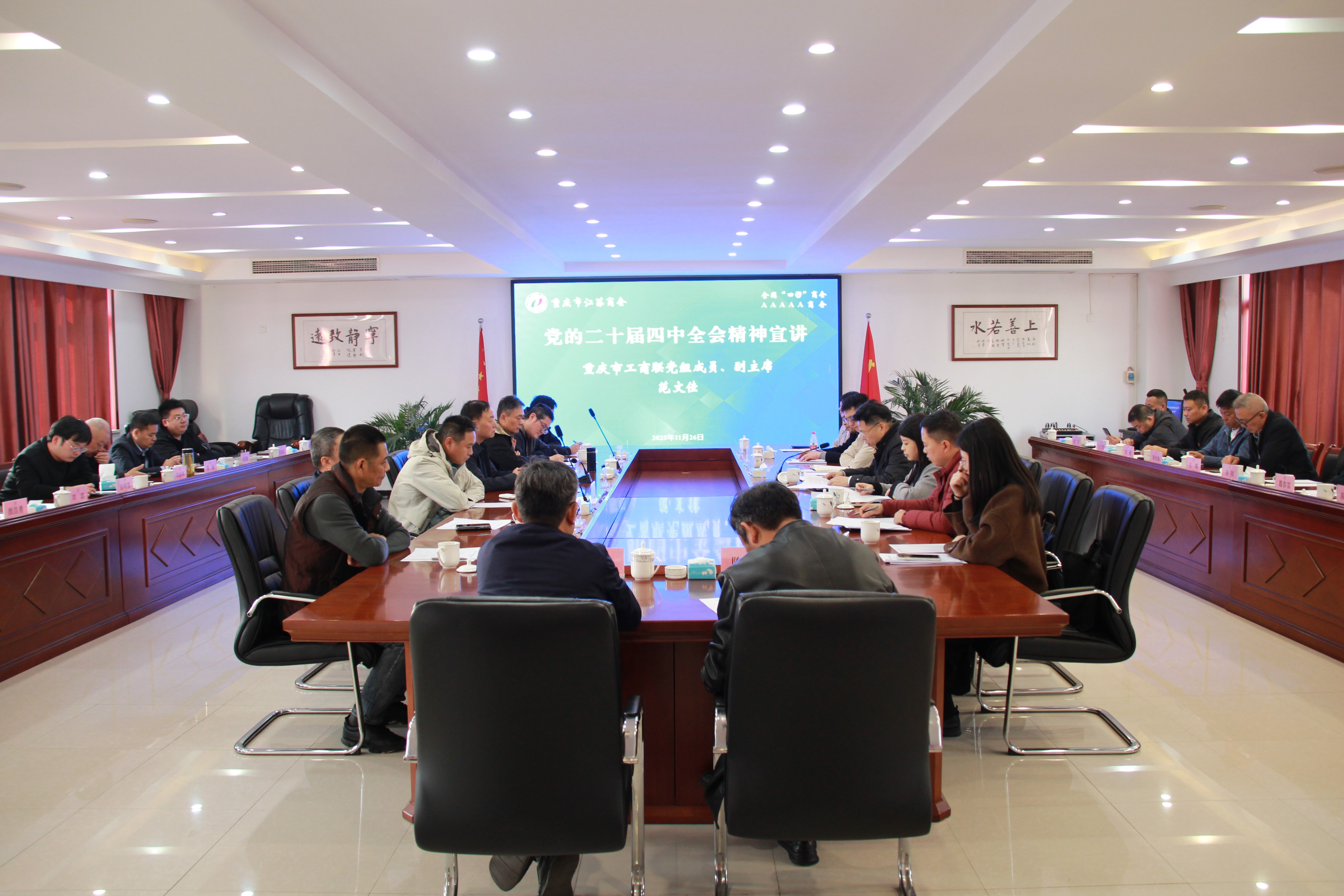 11 月 26 日,党的二十届四中全会精神宣讲会在商会会长企业重庆首科实业有限公司会议室召开,市工商联党组成员、副主席范文佳主持会议并作宣讲。