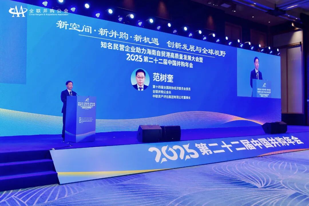 2025年11月28日下午,由全联并购公会主办、海南省内蒙古商会承办的“知名民营企业助力海南自贸港高质量发展大会暨2025第二十二届中国并购年会”在海南海口隆重召开。第十四届全国政协经济委员会委员、全联并购公会会长、中联资产评估集团有限公司董事长范树奎在致辞中强调,并购是推动新质生产力发展的重要举措,并从六个维度来解读并购生产力。现将致辞全文分享如下: