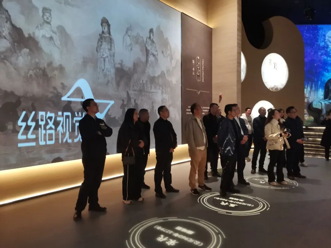 考察团一行先后走访孔雀洞、茗山寺、华严洞、毗卢洞、塔坡、圆觉洞等国家级文物保护摩崖造像。在石窟研究院专家讲解下,商会代表们细致观摩了孔雀洞现存最完整的晚唐地藏菩萨造像、茗山寺北宋时期精妙绝伦的佛道合一石刻群,以及华严洞南宋“华严三圣”造像的恢弘气象。安岳石窟“古、多、精、美”的艺术特色令众人赞叹不已。在安岳石窟数字展示中心,通过3D建模、VR沉浸式体验等科技手段,考察团直观感受到数字化技术对文物活化利用的推动作用。