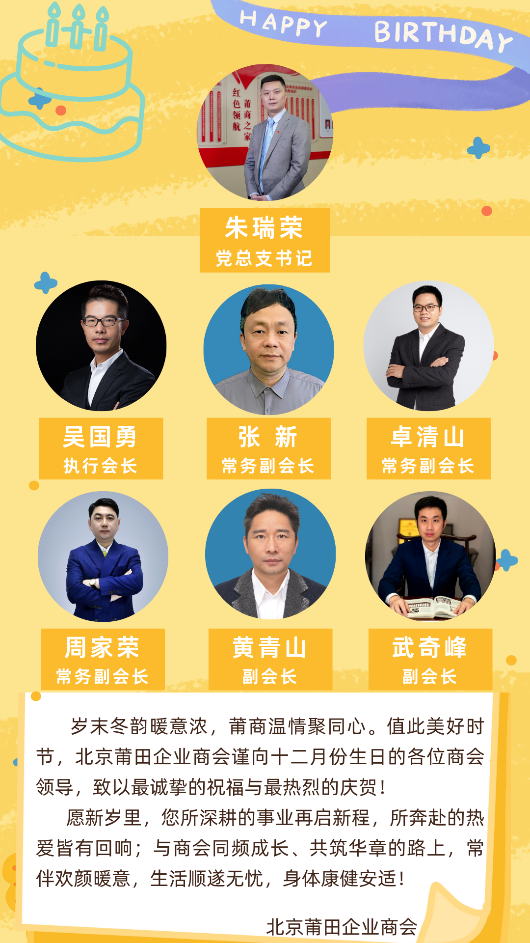 北京莆田企业商会恭祝十二月份生日的商会领导生日快乐!