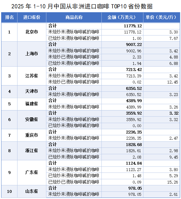 产品结构:以未焙炒未浸除咖啡碱的咖啡为主(约占99.96%),说明中国进口主要以生豆形式进行后续加工。