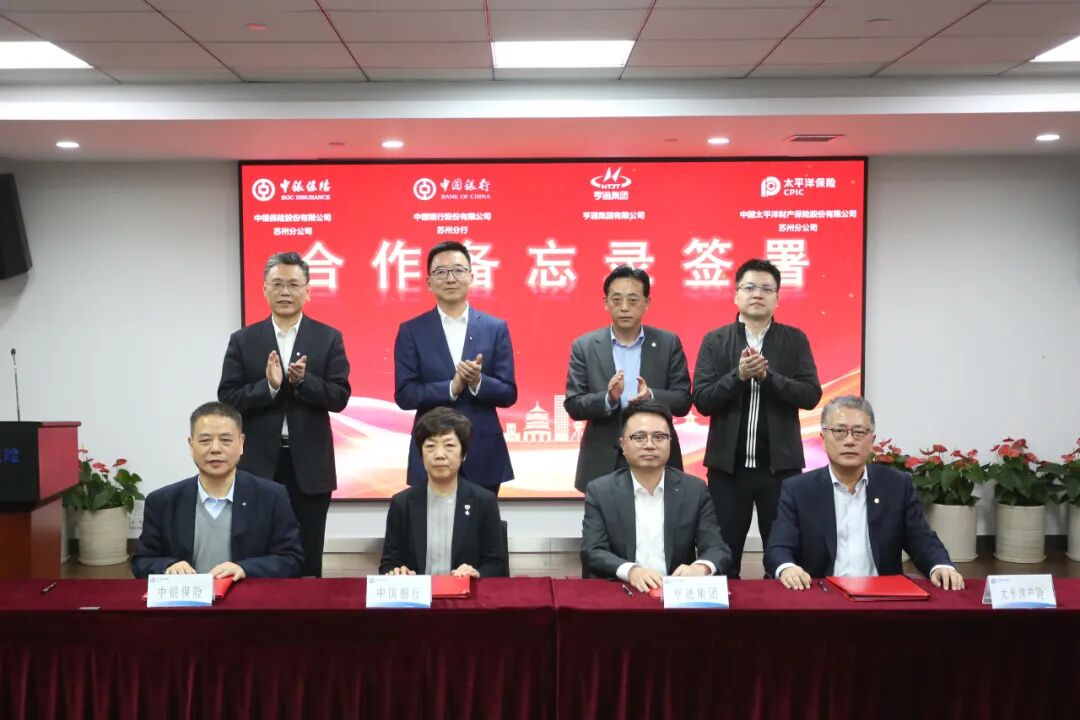 在全体领导嘉宾的共同见证下,中国太保产险苏州分公司与中银保险苏州分公司签署框架性合作协议,为银保深度协同奠定坚实基础。亨通集团与中国银行苏州分行、中国太保产险苏州分公司、中银保险苏州分公司进一步签署合作备忘录,构建起“银-保-企”三方联动、互利共赢的合作新格局。