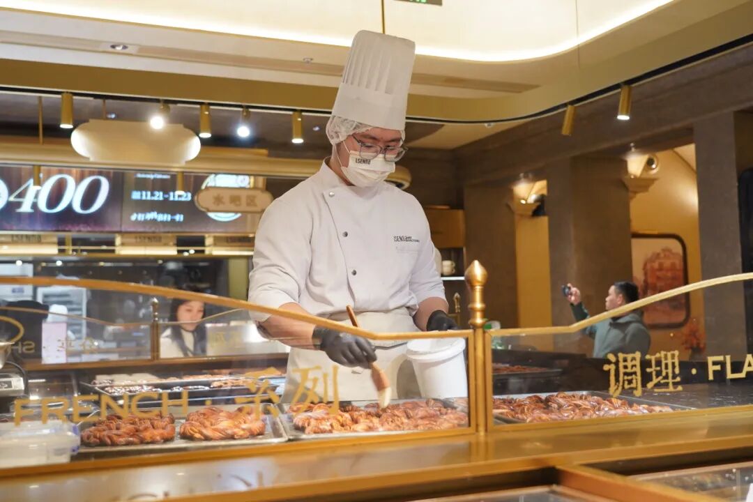 走进罗森尼娜,所有人都惊叹于奢华精致的门店与鲜丽诱人产品带来的冲击力。抠到每个细节的欧法复古风装修、大而全的货柜、极致精致的产品样式和多名师傅后厨忙碌的身影,成为了早上十点的万象城最具活力的门店。