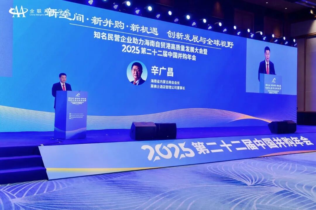 2025年11月28日下午,由全联并购公会主办、海南省内蒙古商会承办的“知名民营企业助力海南自贸港高质量发展大会暨2025第二十二届中国并购年会”在海南海口隆重召开。海南省内蒙古商会会长、莱佛士酒店管理公司董事长辛广昌在致辞中在致辞中表示,海南不仅是政策的高地,更是创新的热土;不仅是全球商品的集散地,更是资本、技术与人才的汇聚地。他呼吁各界把握海南机遇,携手书写发展新篇章。现将致辞全文分享如下: