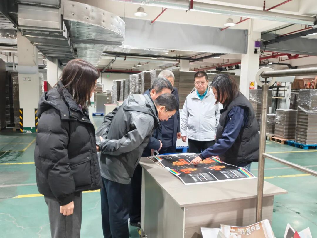随后,一行人前往会长企业——青岛东彩包装科技有限公司实地考察。在企业负责人的引导下,参观了生产车间、研发中心及产品展示区,详细了解了企业在生产工艺、技术创新、质量管控等方面的发展情况,对企业规范化的生产管理模式和创新发展理念给予高度评价。