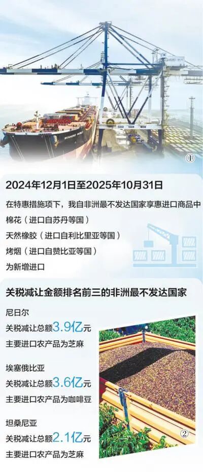 为扩大对最不发达国家单边开放,实现共同发展,自2024年12月1日起,中国对原产于同中国建交的最不发达国家100%税目产品适用税率为零的特惠税率。其中,关税配额产品将配额内关税税率降为零,配额外关税税率不变。一年来,中非互惠合作持续推进,贸易活力不断迸发。近日,记者分别走进非洲的种植基地、中国的贸易企业及生产制造企业,观察零关税政策如何带动非洲相关产业发展、丰富中国消费者的选择。
