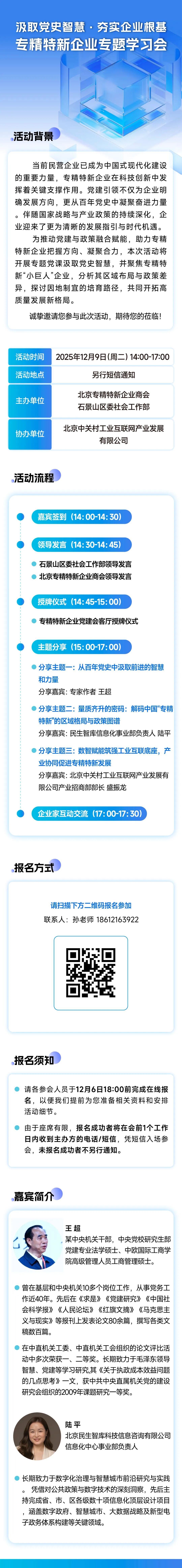 活动邀请丨“汲取党史智慧·夯实企业根基”专精特新企业专题学习会