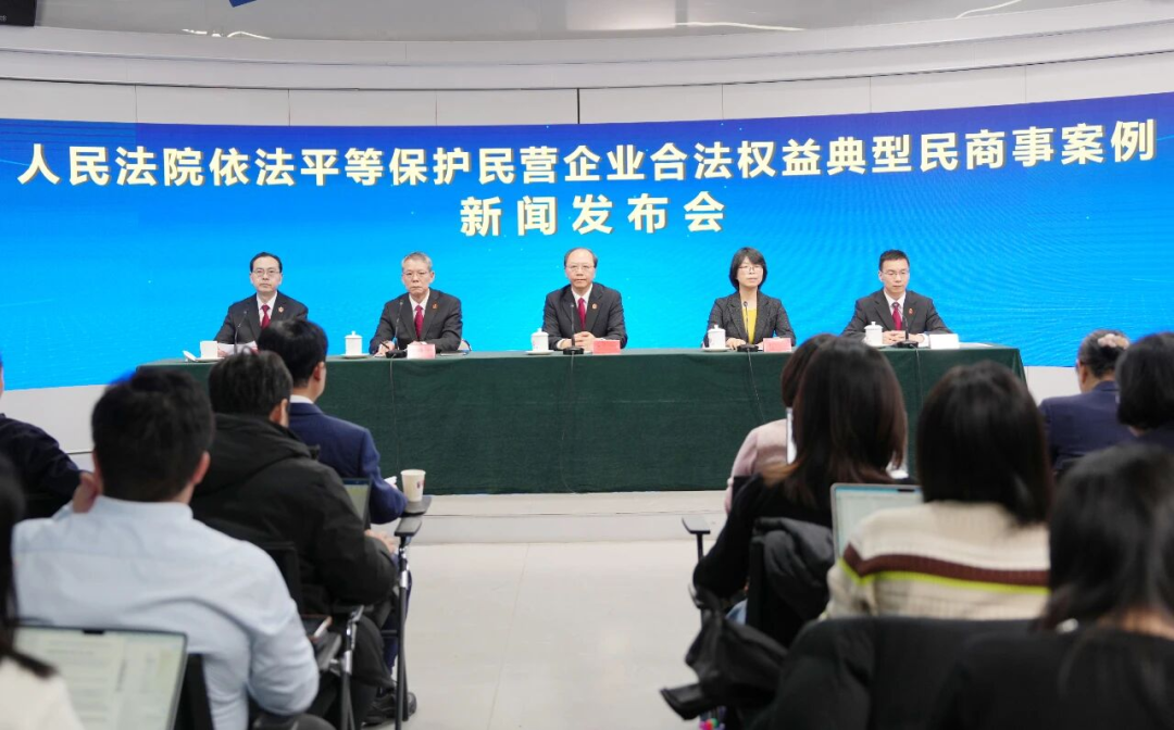 2025年12月4日,最高人民法院召开新闻发布会,发布人民法院依法平等保护民营企业合法权益典型民商事案例,并回答记者提问。最高人民法院民二庭庭长王闯、民二庭副庭长周伦军、民二庭副庭长王朝辉、全国工商联法律服务部部长涂文出席发布会,最高人民法院新闻局副局长姬忠彪主持。会议还邀请了全国人大代表吕卉、陈灿、尚瑞芬、周曙光、潘保春,全国政协委员黄宝荣,企业家代表—全国工商联执委,重庆市工商联副主席,重庆市四川商会党委书记、会长,华森制药党委书记、董事长游洪涛,中国政法大学教授、最高人民法院特邀咨询员李曙光出席。