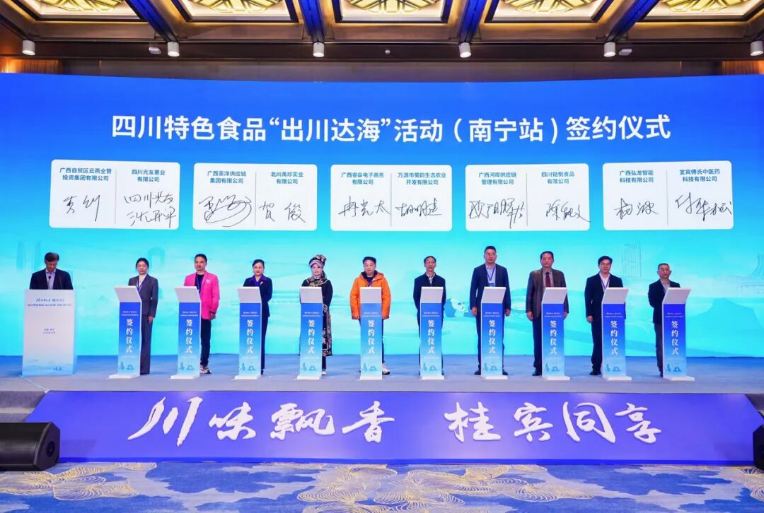广西四川商会会长郎云燕发表讲话,他指出川桂两地地域文化交融、经济互补性强,四川特色食品在广西及东盟市场拥有广阔发展空间。商会作为“在桂川商的娘家和后盾”,将始终致力于搭建两地产业交流平台,帮助川味食品拓宽华南市场、辐射东盟区域,同时也为广西企业赴川投资兴业提供全方位服务。随后,广西四川商会、省内食品企业与广西当地经销商围绕下步合作现场签订了战略合作协议。会议现场还发布了《“川味美食享约而来”四川特色食品体验指南》,集中推介了100余款具有四川风味的特色食品。