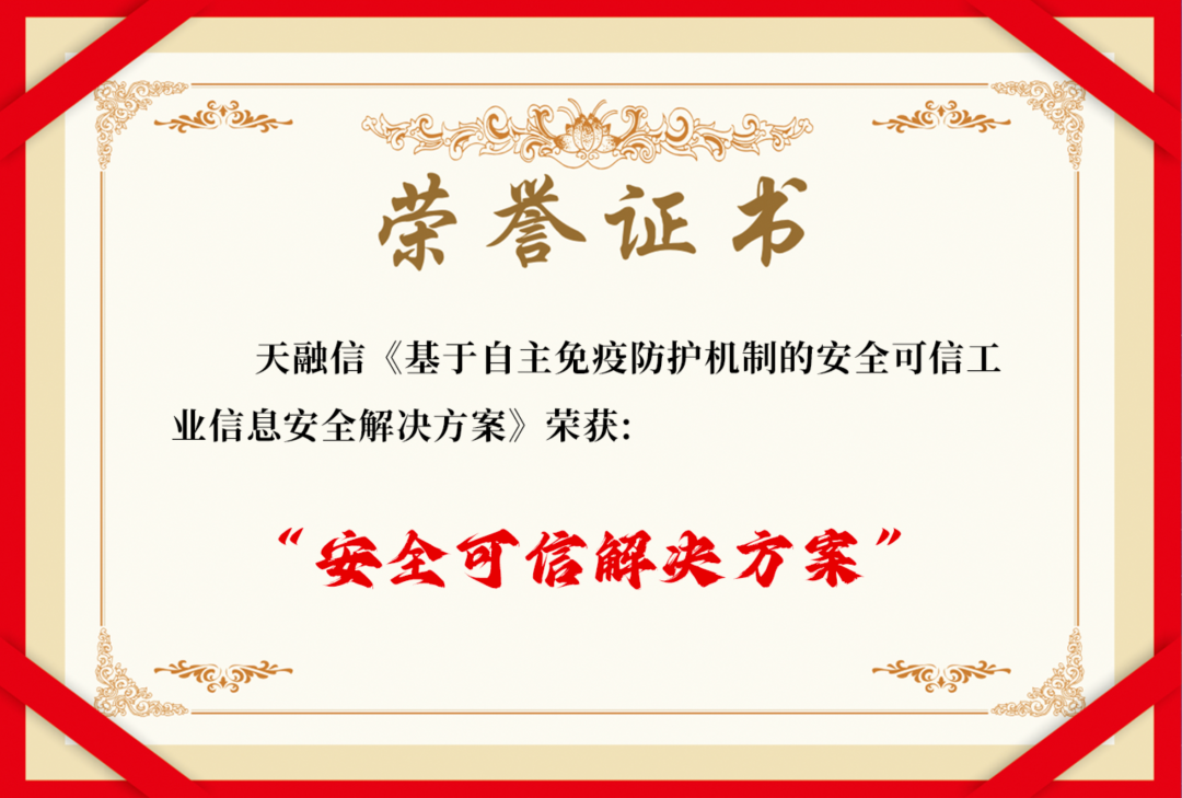 天融信《基于自主免疫防护机制的安全可信工业信息安全解决方案》可为客户提供区域隔离、访问控制功能、主机白名单功能、操作行为监测审计功能、入侵行为检测功能、工业漏洞检测服务、集中安全管理等功能,并基于各行业工业企业特性推出了行业化专用解决方案,全面满足各工业企业的网络安全防御需求,现已广泛应用于电力、石油化工、水务、水利、制造业等众多工业企业,取得了良好的应用示范效果。