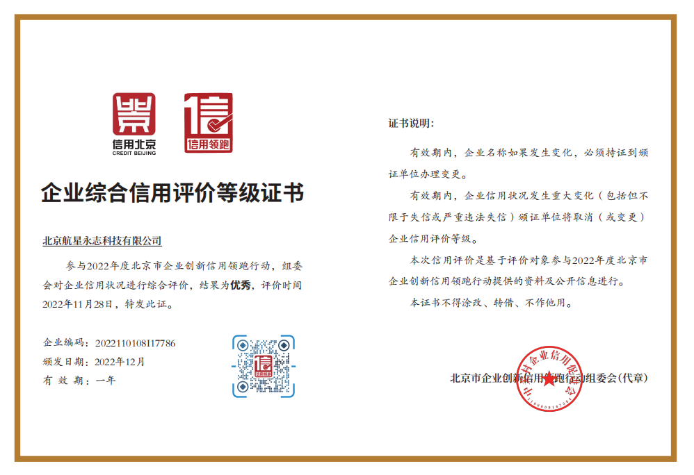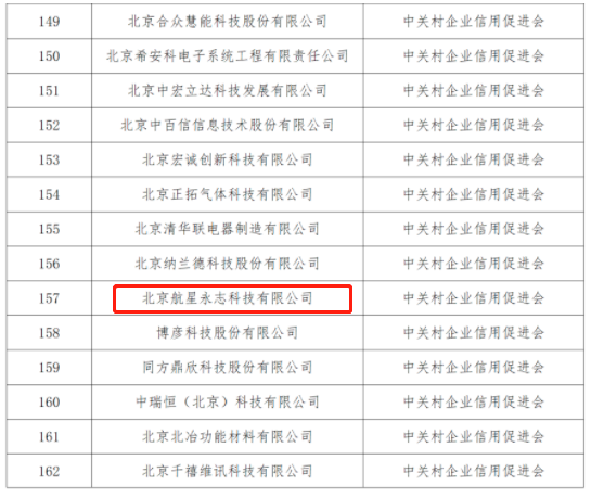 航星永志成功入围2022年度北京市企业创新信用领跑名单