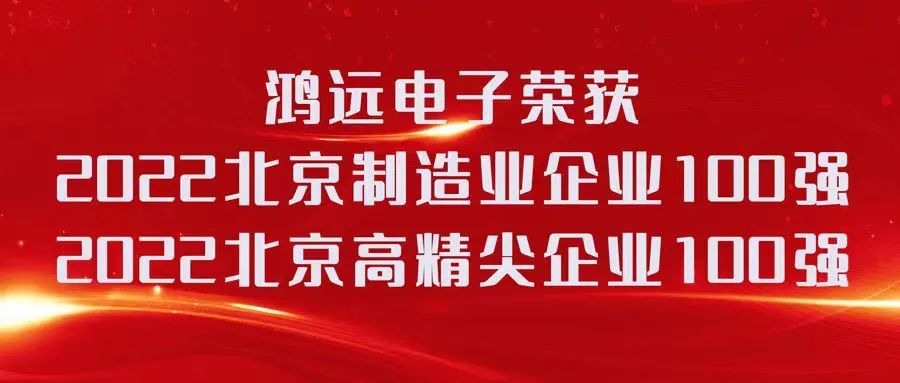 在北京市众多企业的评选中,我会会员单位鸿远电子荣获2022北京制造业企业100强(第49名)、2022北京高精尖企业100强(第34名)的荣誉。